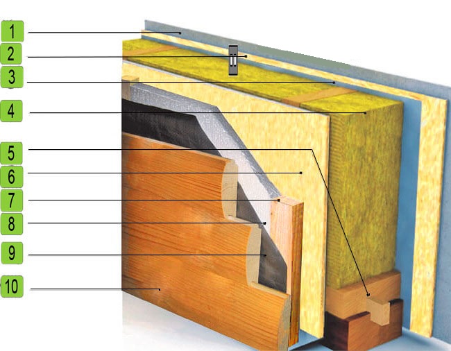 | A | Gips karton 12.5mm | OSB ploča 10mm | VC folija (parna brana) | Mineralna vuna 10cm | Obrađeno drvo (friz) 5x10cm | OSB ploča 10mm | drvena pod-konstrukcija (roštilj) za fasadnu dasku | stiropor 10cm | termopropusna folija | završna obrađena fasadna daska |